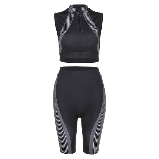Print One Shoulder Sportswear Set For Women Crop Top Leggings Pants Suit Gym Fitness Jogging Slim Tracksuit Outfits Clothing